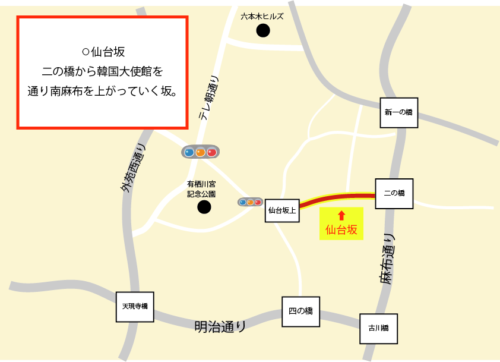 麻布の仙台坂です。片側1車線です。 麻布通りの二の橋から、韓国大使館を通り過ぎて上っていく坂です。周辺に住宅が多く、仙台坂上の交差点はよく言われます。 麻布十番や西麻布へ行く場合なども最短ルートとしてよく使用されると思い […]