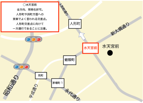 中央区の水天宮前交差点です。 新大橋通りと人形町通りの交差点です。人形町通りは、この水天宮前交差点から秋葉原方向は大きな一方通行ですので注意が必要です。 周辺に住居施設が多く、目的地として行く機会は多いです。永代通りを東 […]