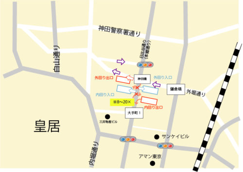 都心環状線の神田橋入口です。 大手町から羽田空港などへ行ったり千葉などの方向へ行く場合によく使用します。 内回り(霞が関、池袋、新宿方面) (タクシーっぽい)入口へ向かうパターン ・神田橋交差点を通るような場合(夜のみ […]