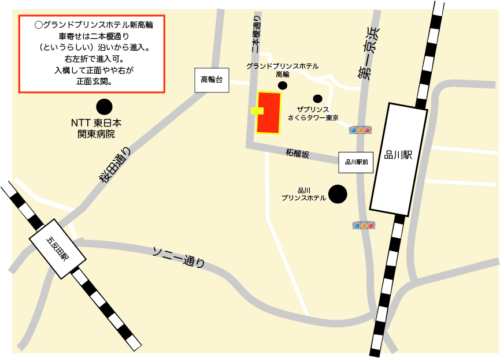 品川駅すぐのグランドプリンスホテル高輪です。 第一京浜などの大通り沿いに車寄せはないので注意してください。 ①伊皿子のほうから進行し、路地(抜け道で有名なところ)を左折して進行 ②第一京浜を進行し、「品川駅前」交差点の […]