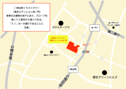 虎ノ門の神谷町トラストタワー(ホテル「東京エディション虎ノ門」)です。 車寄せが建物内にあります。イラストの「入1」に向かう道路は一方通行ですので注意してください。「入2」は実車なら右折でも進入可能です。 2023年1 […]