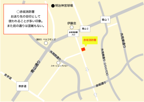 青山の赤坂消防署です。 青山通りの伊藤忠近く、「赤坂消防署入口」交差点とセットで覚えておくとよいと思います。目的地の目印として言われるほか、消防署前の通りを使ってスキーショップジローや表参道の延長の道路まで抜けることも […]