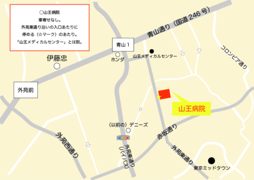 赤坂の「山王病院」です。 外苑東通りを青山から六本木の方向へ進み、左側にあります。車寄せはないので、外苑東通り沿いの駐車場入口の邪魔にならないところで停めることになります。 より青山通りのあたりに、「山王メディカルセン […]