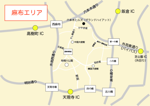 港区の麻布エリア(東麻布を除く)でタクシーを運行するうえで重要なポイントをまとめました。坂が多いエリアですが、まずはイラストにある坂から覚えていくとよいと思います。 近い首都高速の入口 入口 方面 天現寺IC(2号目黒 […]