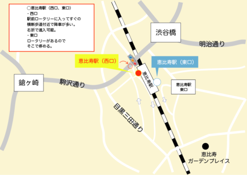 恵比寿駅(西口、東口) 【タクシーで主要駅までお送りする】