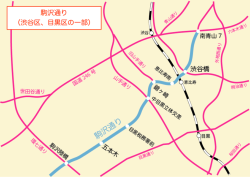 駒沢通り(渋谷区、目黒区の一部) 【タクシーで定番の幹線道路】
