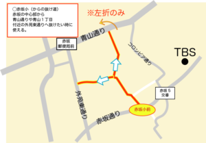 赤坂通り【タクシーで定番の幹線道路】 2024年2月23日 最終更新日時 : 2024年9月23日 タクマップ 赤坂通り 赤坂通りは、日枝神社のある「山王下」交差点から青山のほうへ延びていき、恵比寿のあたりからは「駒沢通り」と名前を変えます。朝夕のラッシュ時や夜の時間帯は、TBSのあたりはタクシーで混雑して進みにくくなります。交差点交差する通り目印など山王下外堀通り日枝神社〇赤坂Bizタワー〇TBS〇赤坂5交番前コロンビア通り交番赤坂小前抜け道あり(赤坂小(からの抜け道))〇乃木坂陸橋外苑東通り(坂でつながっている)株式会社SMILE-UP(旧ジャニーズ事務所)〇外苑東通り(バイパス)(坂でつながっている)青山墓地中央〇根津美術館前みゆき通り(表参道の延長)抜け道あり(西麻布~根津美術館)南青山6骨董通り南青山7六本木通り 関連記事: 西麻布~根津美術館【タクシーの抜け道を知る】 【タクシー主要エリア】青山エリアの重要なポイントをおさえる 赤坂小(からの抜け道) 【東京のタクシーでよく使う抜け道】 【タクシー主要エリア】赤坂エリアの重要なポイントをおさえる
