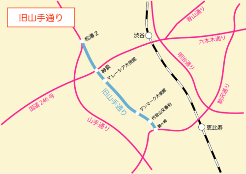 旧山手通りは、山手通りと並行するように松濤~恵比寿 間を南北に結ぶ通りです。多くの区間で第1車線にパーキングメーターが設置されており、やや走りにくい印象です。全区間でUターン禁止です。 交差点 交差する通り 目印など […]
