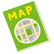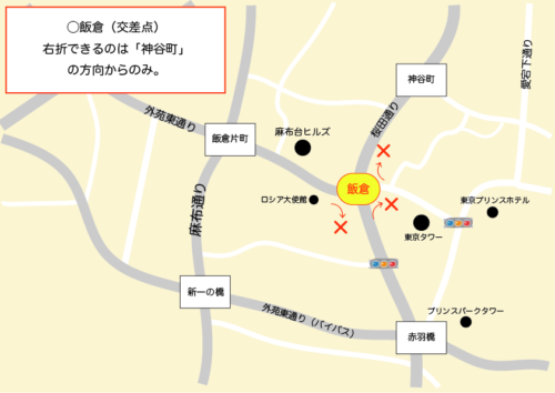 車寄せが建物内にあります。イラストの「入1」に向かう道路は一方通行ですので注意してください。「入2」は実車なら右折でも進入可能です。