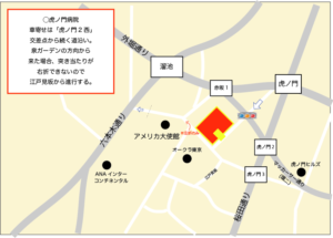 あり…六本木通りに並行する道沿いから左右折で進入可能